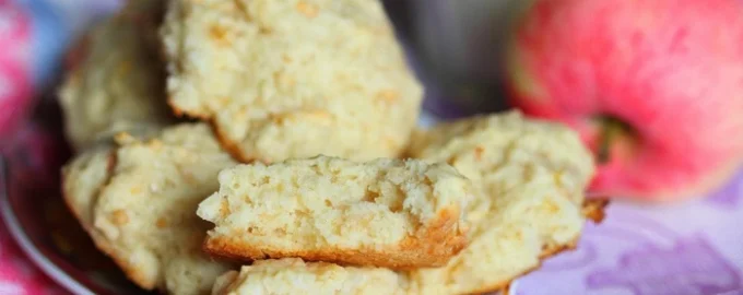- Laita kulhoon tuorejuusto, muna, sokeri, suola, kaada kasviöljy, sekoita ja kaada seulotut jauhot leivinjauheella, sekoita, lisää omenat ja sekoita uudelleen hyvin.